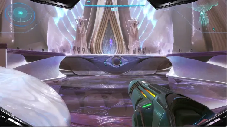 中央大聖室に戻り、青く漂っているエンブレムをスキャンすることでエレベーターを起動できる。