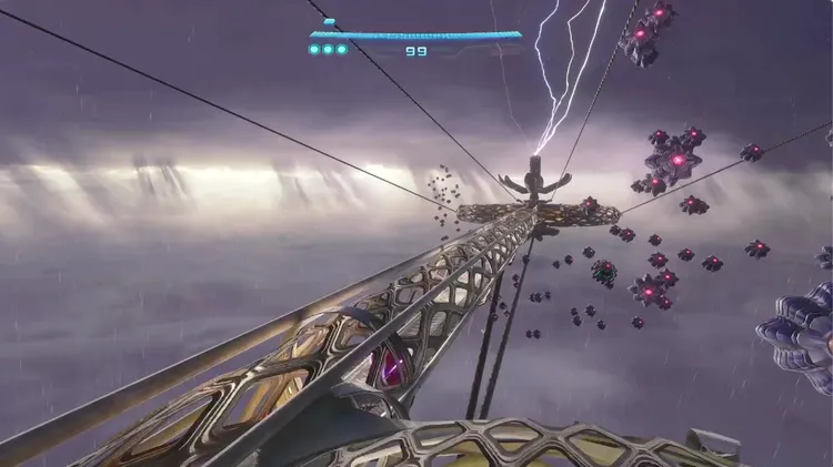 通電したため一部場所で雷が通っている場所があり、触れるとダメージになるため注意が必要。