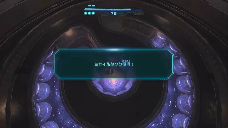 - モーフボールで細長い通路を進み、最奥でボムを使う