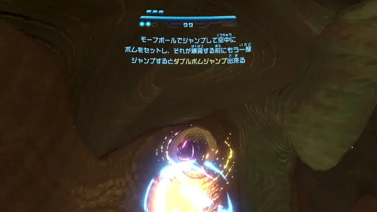 モーフボール状態では、空中にボムを設置後に爆発する瞬間に再びジャンプすることで2段ジャンプをすることが可能。高い位置にモーフボール専用の穴がある時は、2段ジャンプを試してみよう。