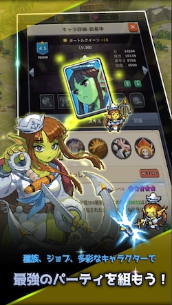 種族やジョブ、多彩なキャラクターが用意された本作では、育成によって最強パーティを目指す楽しさが味わえます。さらにはペットの概念までもが実装されており、遊びごたえ抜群の作品となっています。