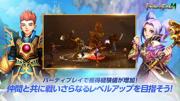 フィールドやダンジョン、アイテム獲得やレベルアップ、ボスクリアなどを目的とした様々なパーティプレイが可能です。同じ目的をもつメンバーを自動でマッチングする「クイックマッチング」機能もお楽しみください。