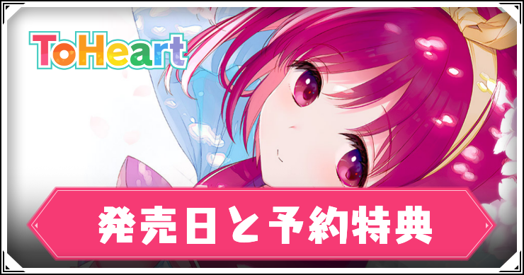 『ToHeart(リメイク版)』の発売日はいつ?発売日や値段、予約特典などの最新情報を紹介しています。また限定版や早期・店舗特典内容の情報も合わせて紹介していますので、Switch,PC用ソフト『ToHeart』のぜひお役立てください。