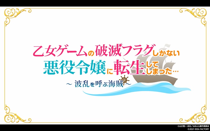 その他、 今後の最新情報につきましては、 公式サイトならびに公式Twitterにて順次お知らせいたします。 引き続き、 「乙女ゲームの破滅フラグしかない悪役令嬢に転生してしまった… ~波乱を呼ぶ海賊~」を何卒よろしくお願いいたします。