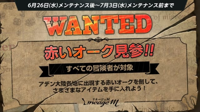 エヌ・シー・ジャパン株式会社は、世界中が熱狂したMMORPGリネージュのモバイル版タイトル『Lineage M(以下、リネージュM)』において、本日より新イベント「赤いオーク見参!!」及び「ワールドボス強化週間」の開催、新アイテム「エキンスの成長箱」の登場、公式情報番組「話せる島通信#4」の配信日程が6月28日(金)に決定いたしました事をお知らせいたします。
