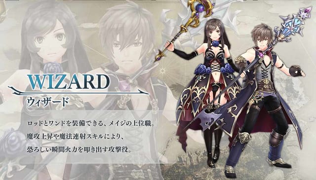 ロッドとワンドを装備できる、メイジの上位職。魔攻上昇や魔法連射スキルにより、恐ろしい瞬間火力を叩き出す攻撃役です。