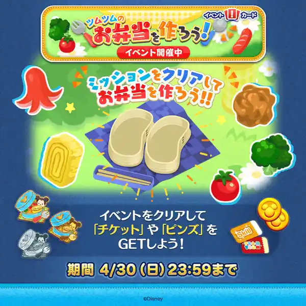 ミッションクリアしてツムツムのかわいいお弁当を完成させる新イベント「ツムツムのお弁当を作ろう!」開催!
