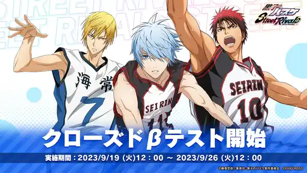 本日8/31(木)より、アニメ『黒子のバスケ』の完全新作3Dスマホゲーム『黒子のバスケ Street Rivals』のクローズドβテストの参加者の募集を開始いたします!