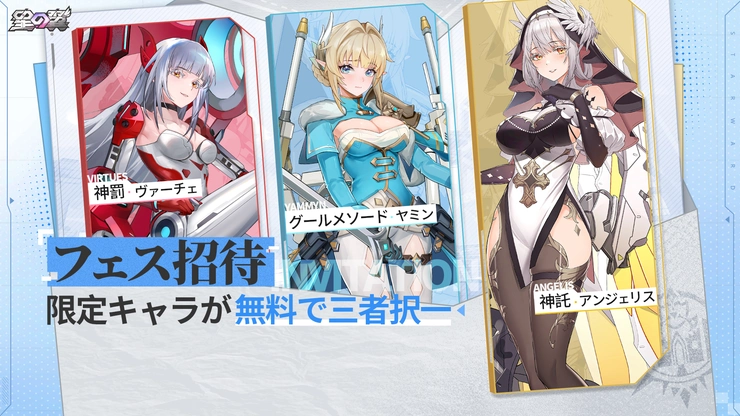 過去に登場していた限定キャラクター「ヴァーチェ」「ヤミン」「アンジェリス」が復刻。イベントに参加すると、3体のうち1体を選んで獲得可能だ。ほかにも一部の過去の限定キャラクターを、天賦MAXの状態で期間限定で体験できる。毎日ログインして「体験カード」を最大12回受け取って、好きなメカ美少女を選択しよう。本作を最近始めたプレイヤーだけでなく、当時入手し損ねてこのチャンスを待っていた熟練プレイヤーもこの機会をお見逃しなく。