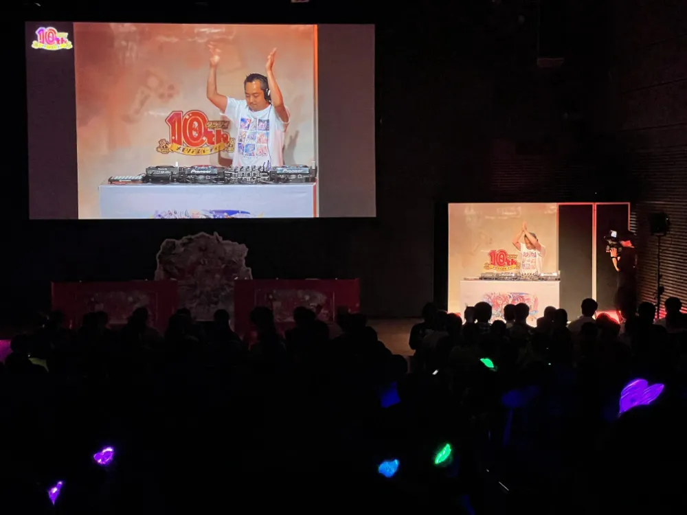 まずはイノジークロークの加藤浩義さんのDJからスタート!クラフィの楽曲を流れるように繋いでいく音楽体験が心地よく、ズンッと響く低音も最高!カラフルな照明やペンライトがキレイで、気分はもうクラブ!テンションがぶちあがりました!