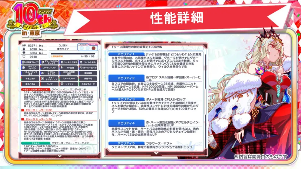 リデルはフォームチェンジで「心愛なる栄勇女王 リデル」になることが可能。こちらもとてつもなく強力な性能となっており、会場はもう驚きを超えて笑い声が聞こえてくるような状態となっていました。