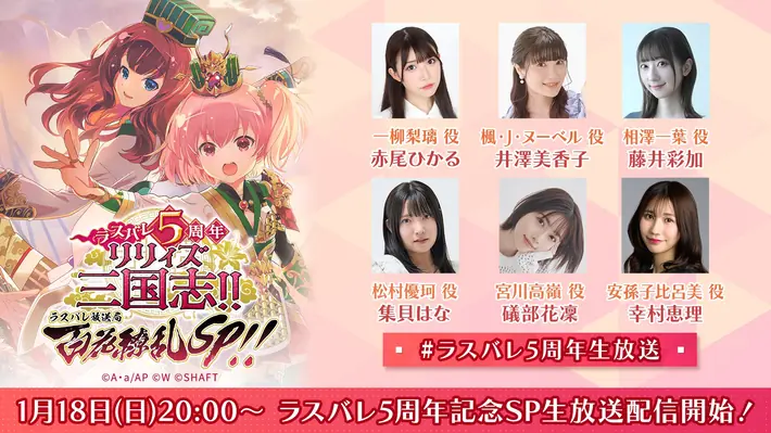 『ラスバレ』では定期的にゲーム情報を紹介する生放送が行われており、1/18(日)には「ラスバレ放送局」の5周年記念生放送が行われた。