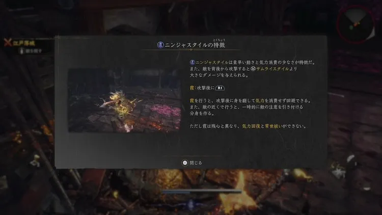 武器を選んだ後はニンジャスタイルのチュートリアルが入るため今のうちに動きに慣れておこう。