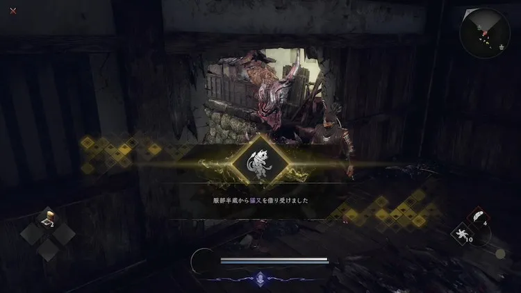 登った先で服部半蔵から守護霊「猫又」を入手。ニンジャスタイル用の守護霊としてセットされる。