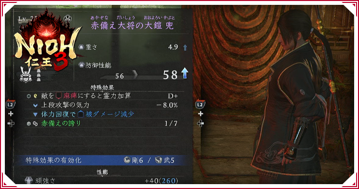 河童の魂代を陰の座に装備することで発動可能になる「開運符」は幸運を底上げし、入手できる装備などが高い希少度になりやすくなる。