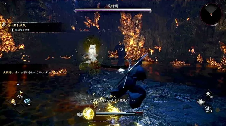 妖々姿洞の最奥に行くと、飛縁魔との戦闘になる。ストーリーボスほど強敵ではないが、麻痺を付与する飛び道具を使用してくるので注意しよう。