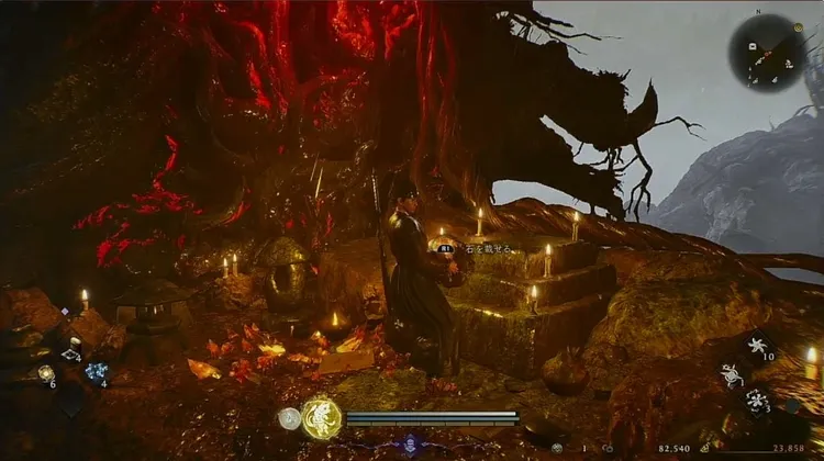小地獄を浄化して先に進むと、石が落ちているので、これをマップを少し戻った位置にある台座の上に置くことで奇譚達成となる。
