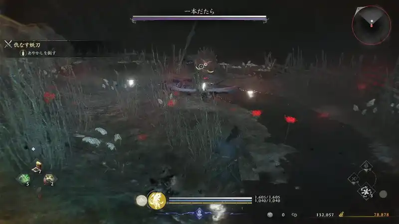 はしごを降りて水場に入ると、ボス「一本だたら」が出現する。