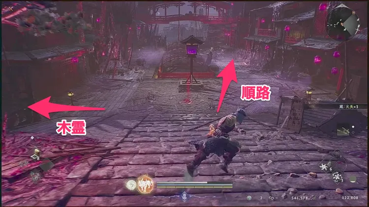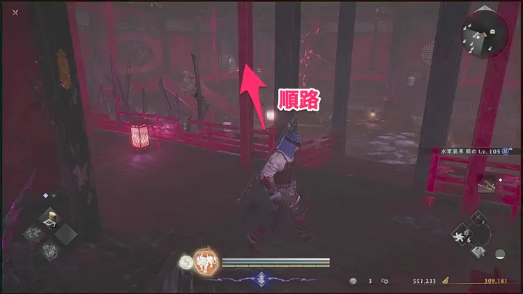巡回するあやかし達の近くにある香炉を攻撃すると安全に通り抜けられる。