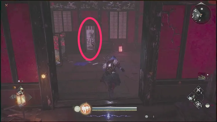 最初の罠を超えてすぐの場所に掛け軸に隠された部屋がある。部屋の宝箱からは指南書が手に入る。