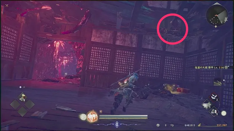 道中の屋内にある小宝箱に近づくと、上からあやかしが降ってくるので注意