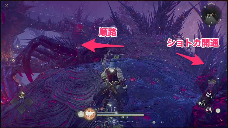 上に進む途中の分かれ道の先にあるハシゴを降ろすとショートカットが開通