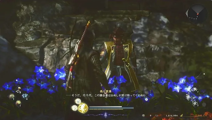 目的地に行くと、徳川家康がいるので話しかけると共に薬草を探すことになる。マップに目的地が表示されるので家康と同行する。