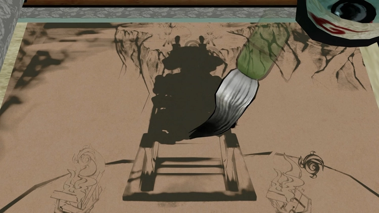 スサノオが剣を振って斬撃が見えた後に、筆を持って一閃を描こう。