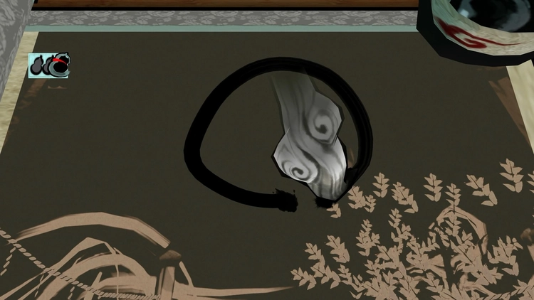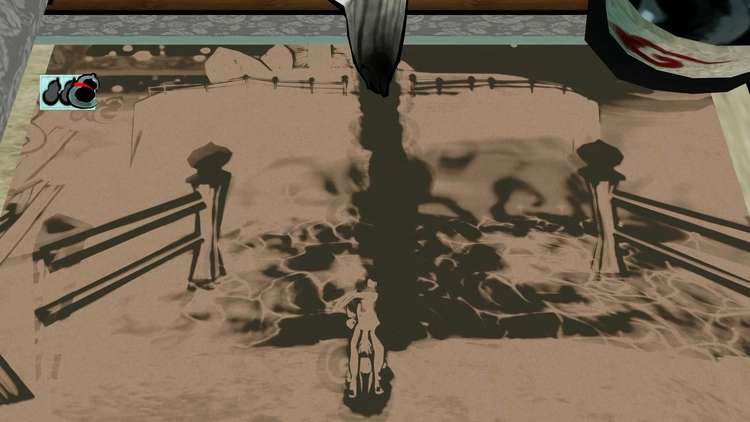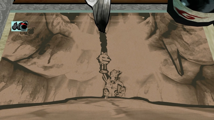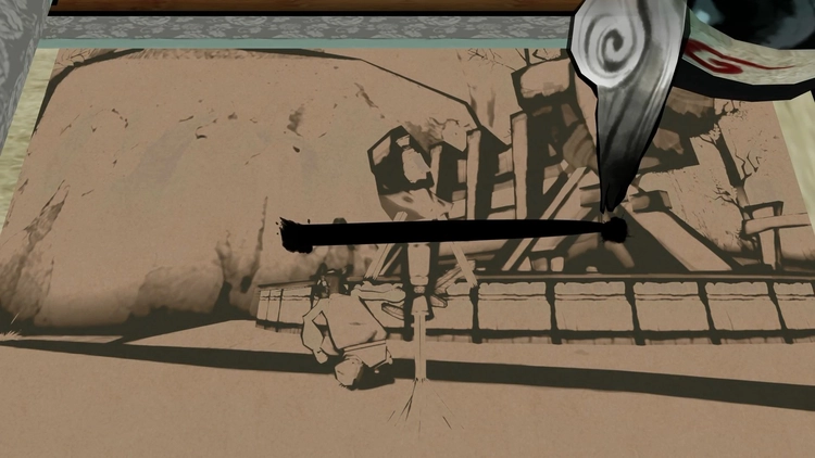 橋の壊れた部分を筆で塗りつぶすと、橋が修復されて先に進むことができる。