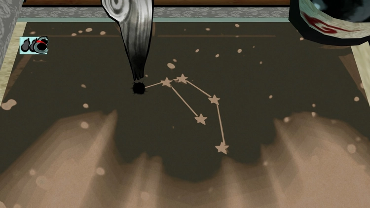 ビンに頭突きをすると地下室へのハシゴが出現する。
