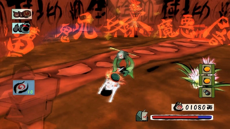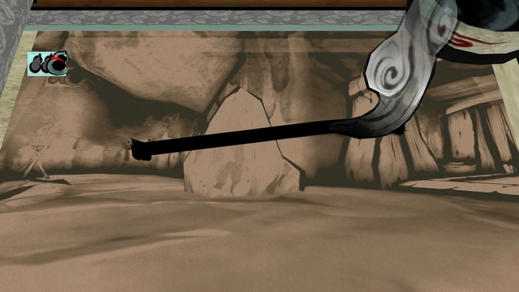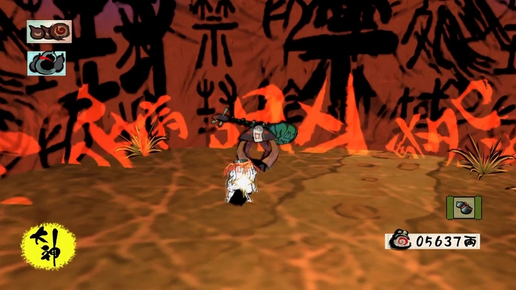 神器で攻撃をしていくと敵が白黒の状態になる。この状態の敵には筆業が有効なため、一閃を使うのもよい。