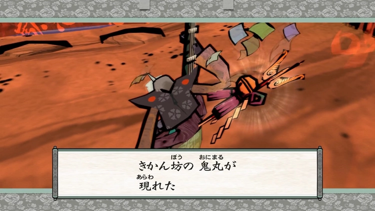 マップには浮遊している巻物があり、巻物に触れると妖怪と戦闘になる。夜に巻物に近づくと追いかけてくるため、不意な戦闘には注意。