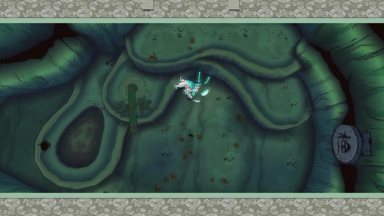 ししおどしを動かすと、部屋の栓が抜けて、栓の先へ進むことができる。