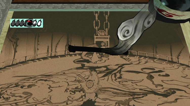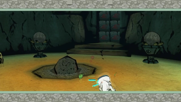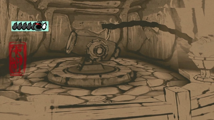1階中央の運び台にいる天邪鬼を一閃で攻撃すると台が少し下へ進む。何度も一閃を当てて地下2階まで下りよう。