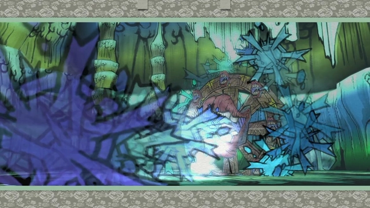 奥の石像を調べると氷唇輪入道と戦闘になる