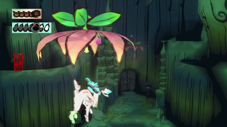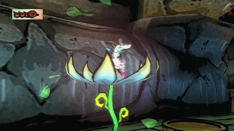 花に入ってジャンプすると、水の入った器がある2階へ行くことができる。