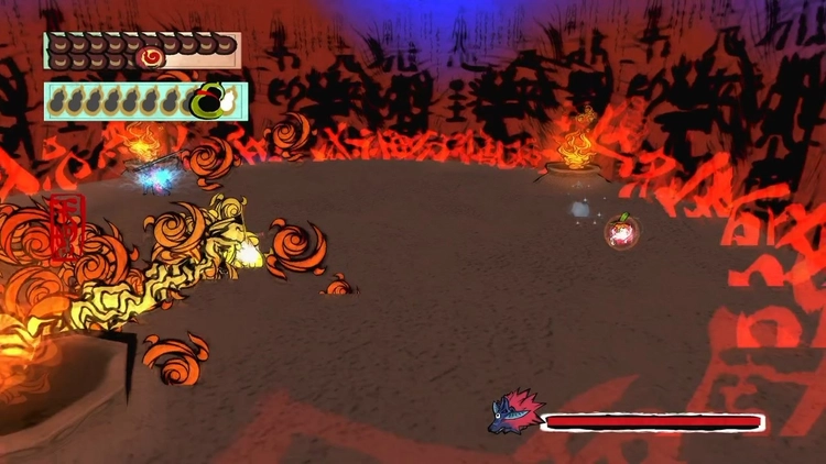 分身体は周りの炎で筆しらべ「紅蓮」を使えば、気絶させることができるため、気絶中に攻撃して処理しよう。