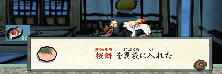 サブイベントクリア後、夜に自宅にいるミカン婆に話しかけると桜餅を5個入手可能。