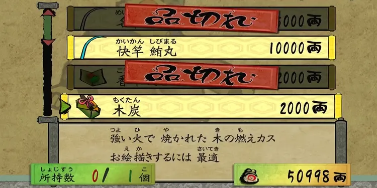 ②道具屋で木炭を購入する