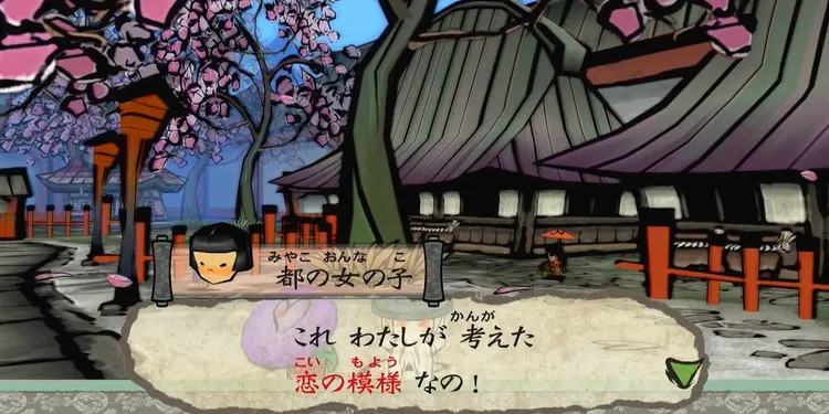 都の女の子に話しかけると、模様を上手く書けていれば報酬を獲得できる。