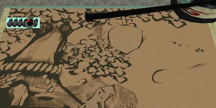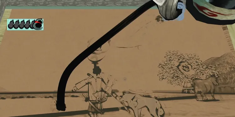 与一の放つ矢に筆しらべ「水郷」を使って、黄金の池から水を運ぶとイベントが発生。