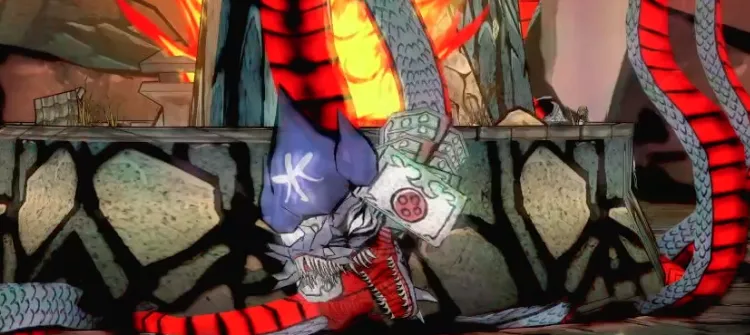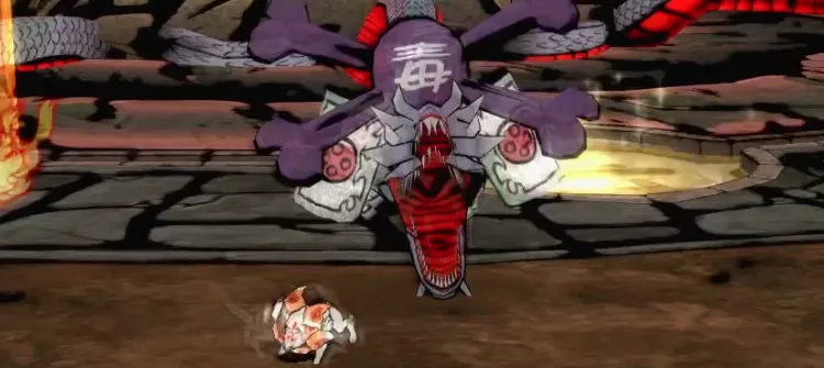 三本の首に酒を飲ませるとダウンし、本体に付いている鐘を攻撃することができる