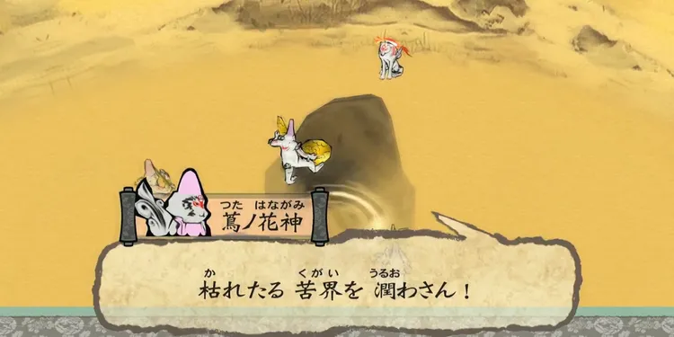 桃コノハナの上に筆を置き、緑色の煙が発生した状態で主人公に線を引く必要がある。上手く線を引けていると主人公にも緑色の煙が上がるため目印にしよう。