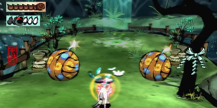 大神_輝玉二式_地面ヒビの入った地面を輝玉で破壊する