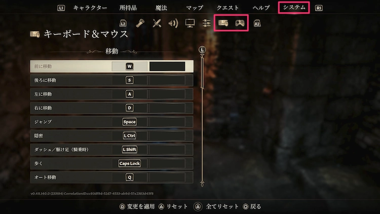 操作ボタンは、メニュー画面の「システム > コントローラー」もしくは「システム > キーボード&マウス」で自由に設定可能だ。