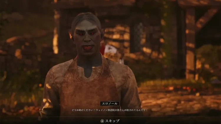 マーティンたちについていき、しばらく話を聞いているとイベントが発生。イベント後にマーティンと会話するとクエスト「ウェイノン修道院」はクリアとなり、次のクエスト「暁の道」が発生する。