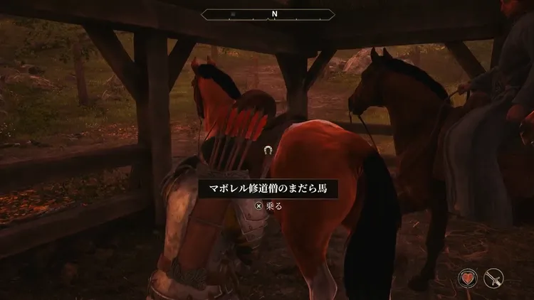 馬に乗って修道院の北東にある曇王の神殿に向かう。馬で移動しても良いが、馬に乗った状態で曇王の神殿ァストトラベルすれば時短が可能。
