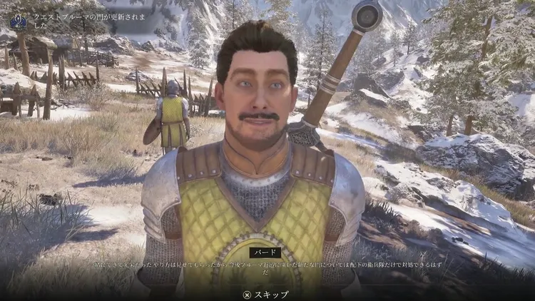 まずはブルーマ東門にファストトラベルして門の外に出よう。門の外で兵士たちが集まっているので近づくと、バードが話しかけてくる。