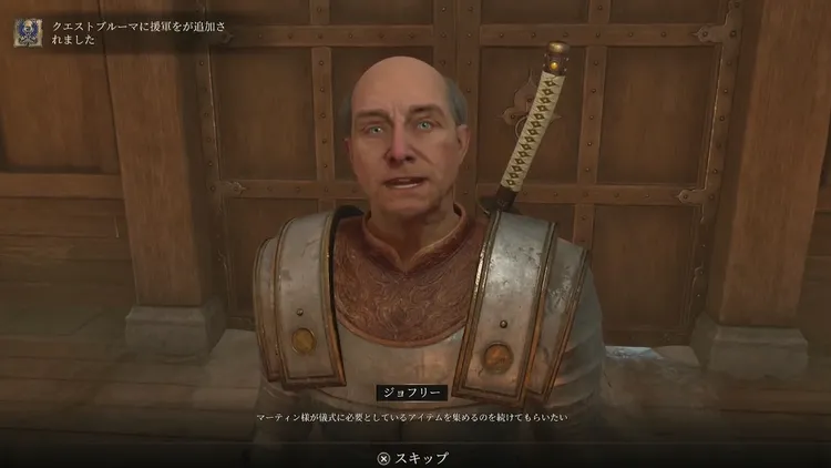 ジョフリーに報告するとクエスト「ブルーマの門」はクリアとなり、クエスト「ブルーマに援軍を」と「神々の血」が発生。