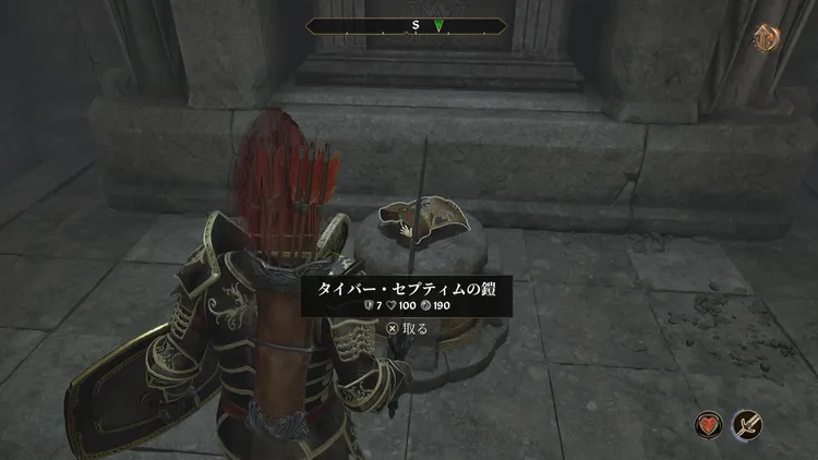 墓の奥に進むと、タイバー・セプティムの鎧を入手可能。鎧が手に入ったら来た道を戻って脱出しよう。